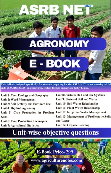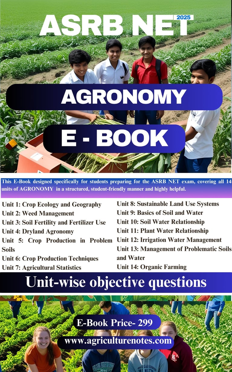 AgricultureNotes.com is your one-stop platform for all agriculture competitive exam preparations. We provide comprehensive study e-books for ASRB NET, Agriculture Officer, JET Exam, Pre-PG, and many more—helping you succeed with the right content at your fingertips.