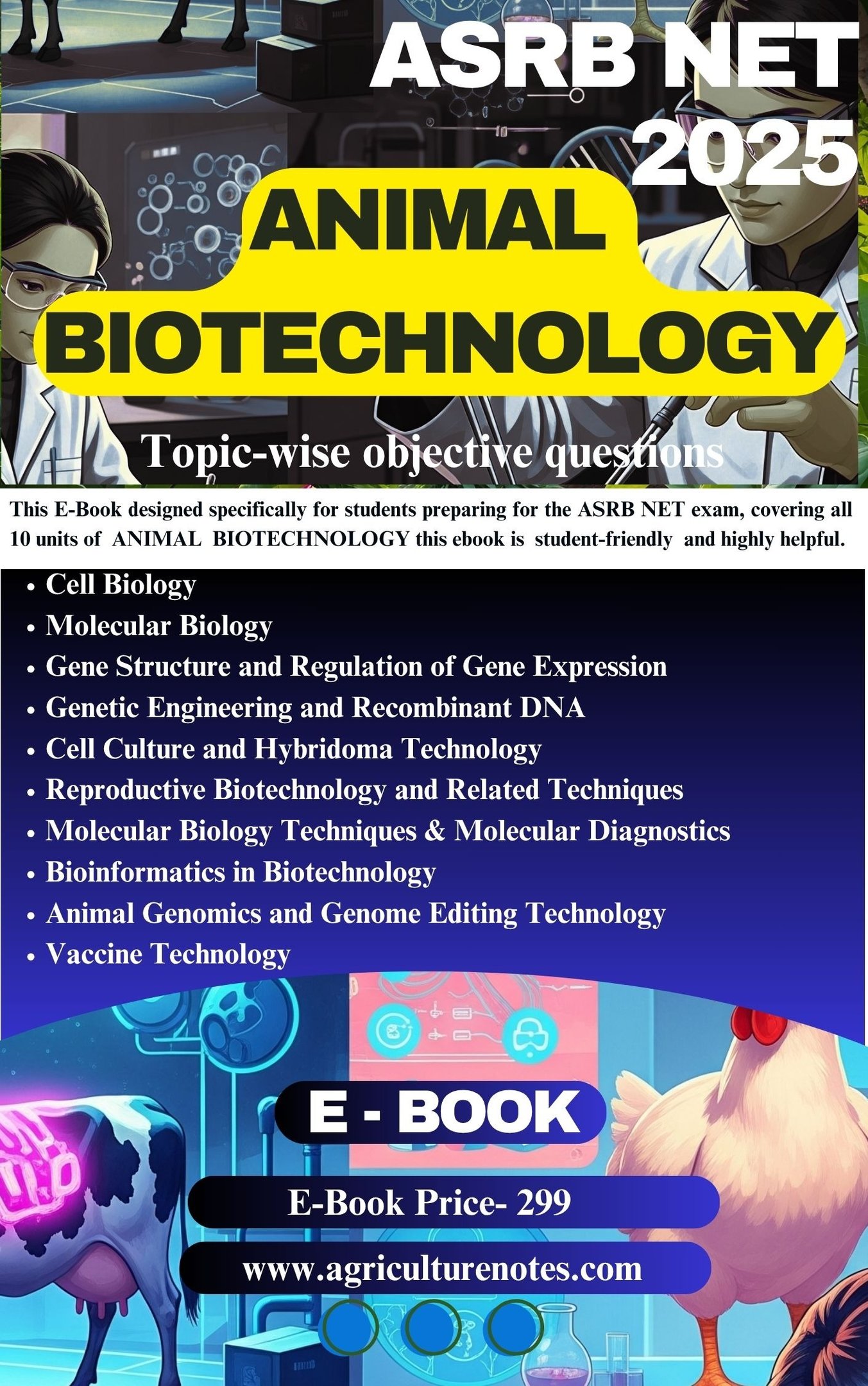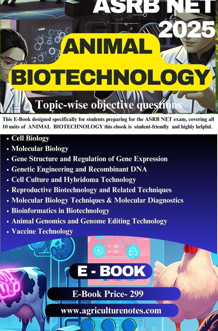 Prepare for ASRB NET 2025 with 1500+ MCQs on Animal Biotechnology. Download PDF for just ₹299. Covers 10 units, topic-wise practice. animal biotechnology notes objective ebook